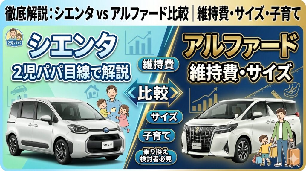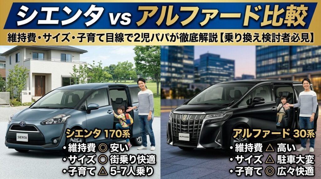 シエンタ vs アルファード比較|維持費・サイズ・子育て目線で2児パパが徹底解説【乗り換え検討者必見】
