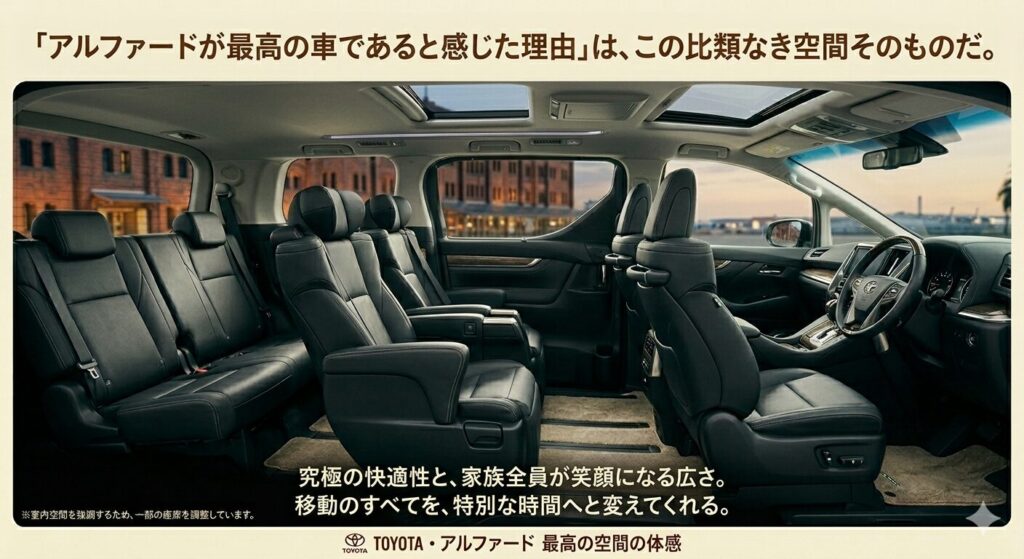 家族旅行や長距離移動を考えるとアルファードの広さや快適性が気になり始めました。