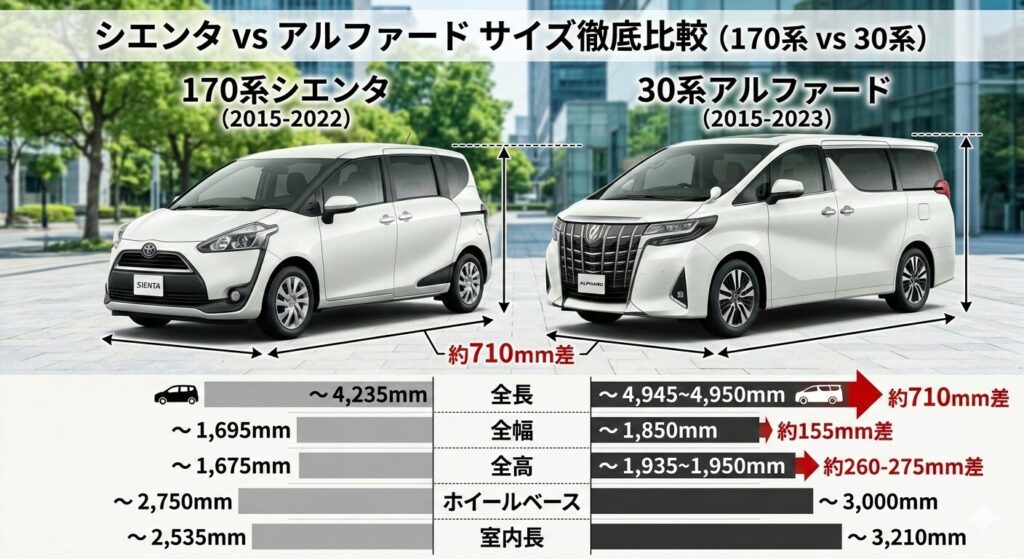 シエンタ(170系)とアルファード(30系)のサイズ比較