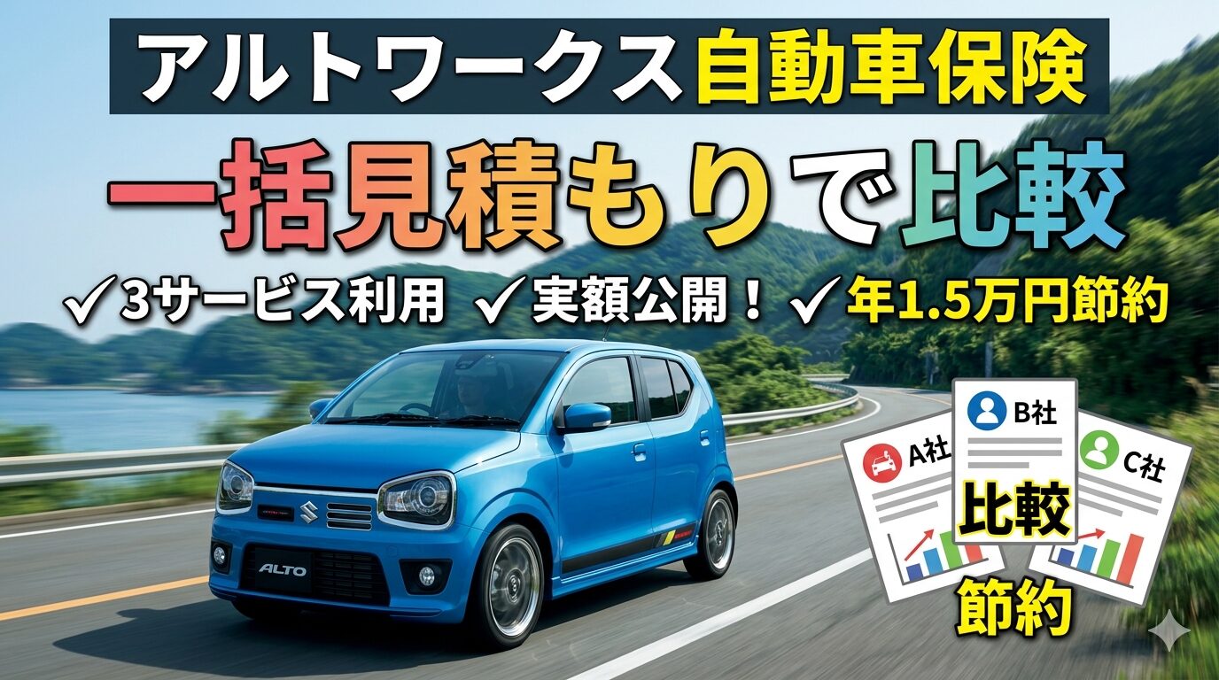 今回はアルトワークス(HA36S)の自動車保険を、3つの一括見積もりサービスで比較した結果をすべて公開します。